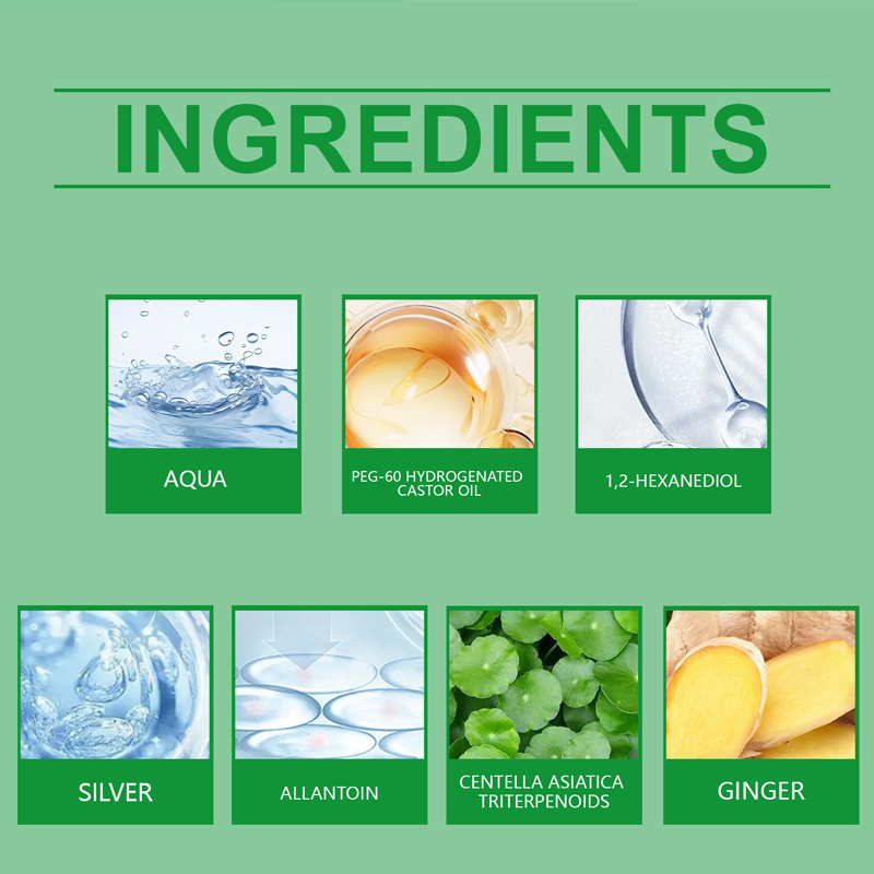 Składniki nieaktywne: Woda, Uwodorniony olej rycynowy PEG-60, 1,2-Heksanodiol, Srebro koloidalne, Alantoina