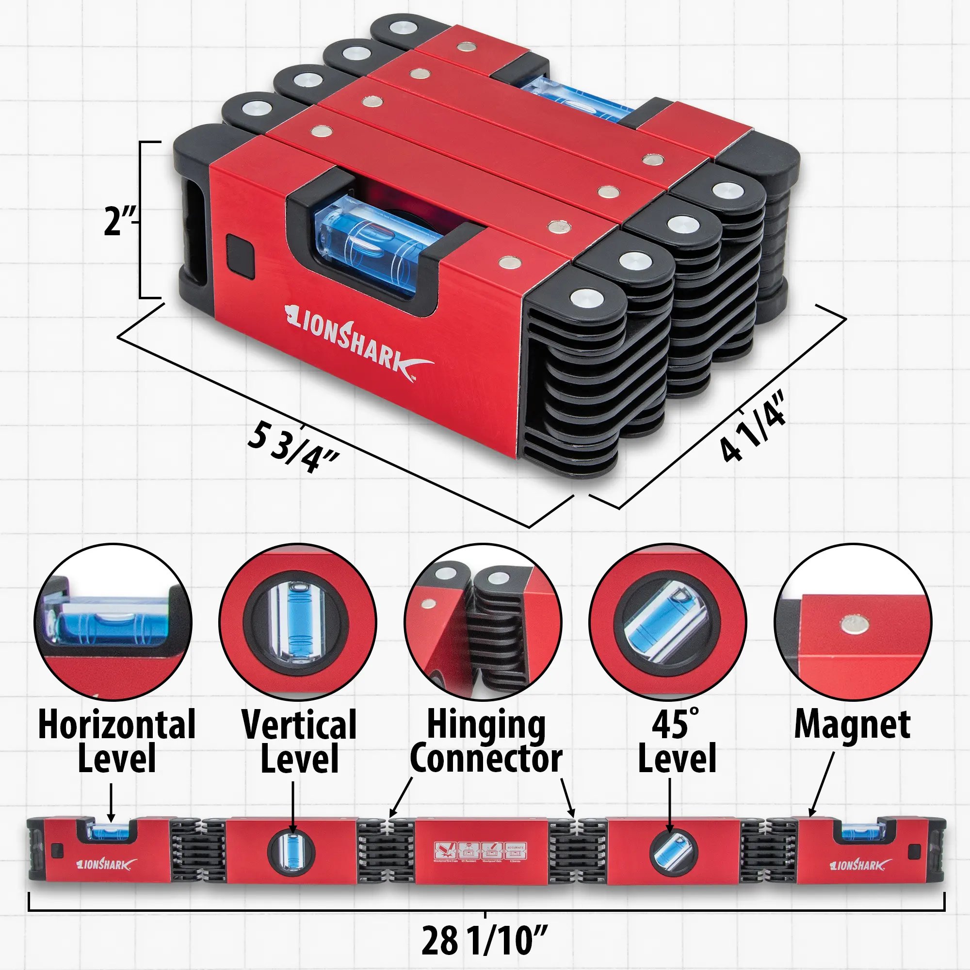 Pracuj mądrzej dzięki wbudowanym magnesom o przemysłowej wytrzymałości. Ta poziomica bezpiecznie przylega do każdej metalowej powierzchni, umożliwiając idealne ustawienie bez użycia rąk na stalowych słupkach lub rurach. W połączeniu z 4 libellami o wysokiej rozdzielczości, za każdym razem bez wysiłku osiągniesz profesjonalną dokładność. ✨