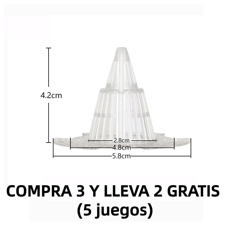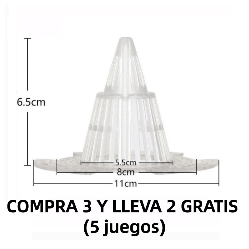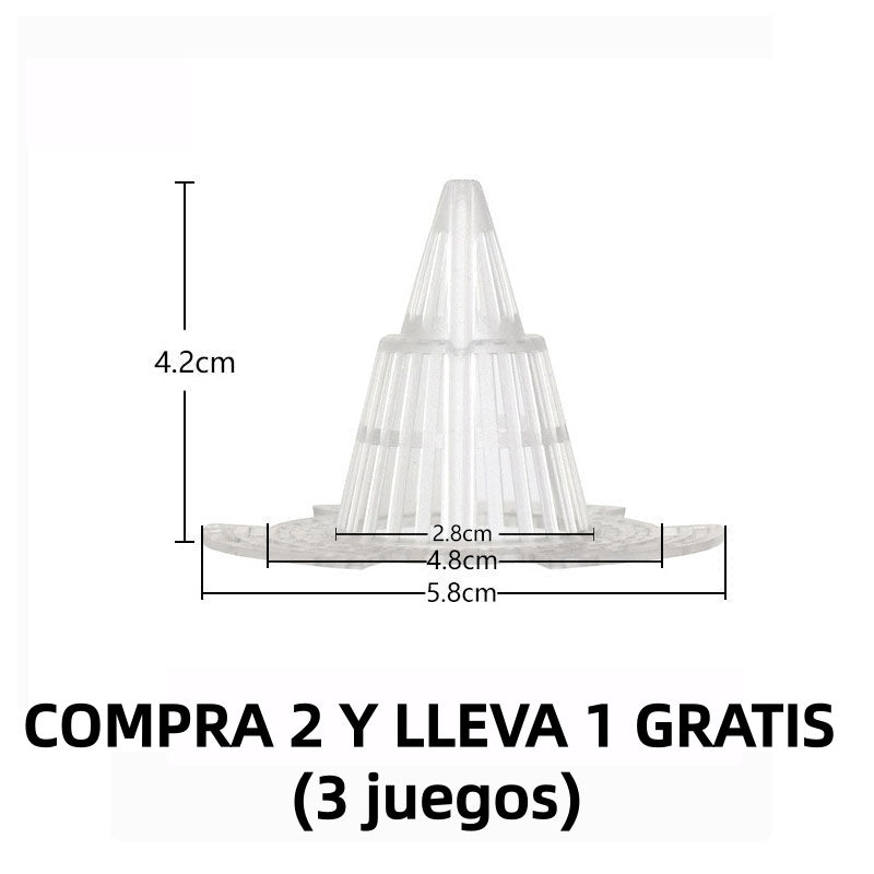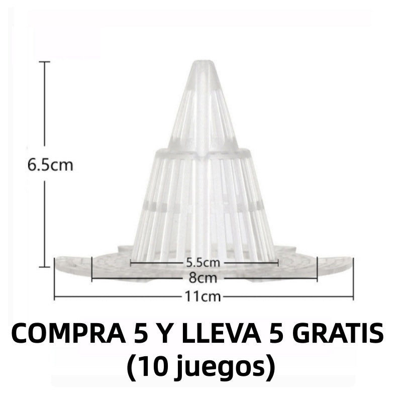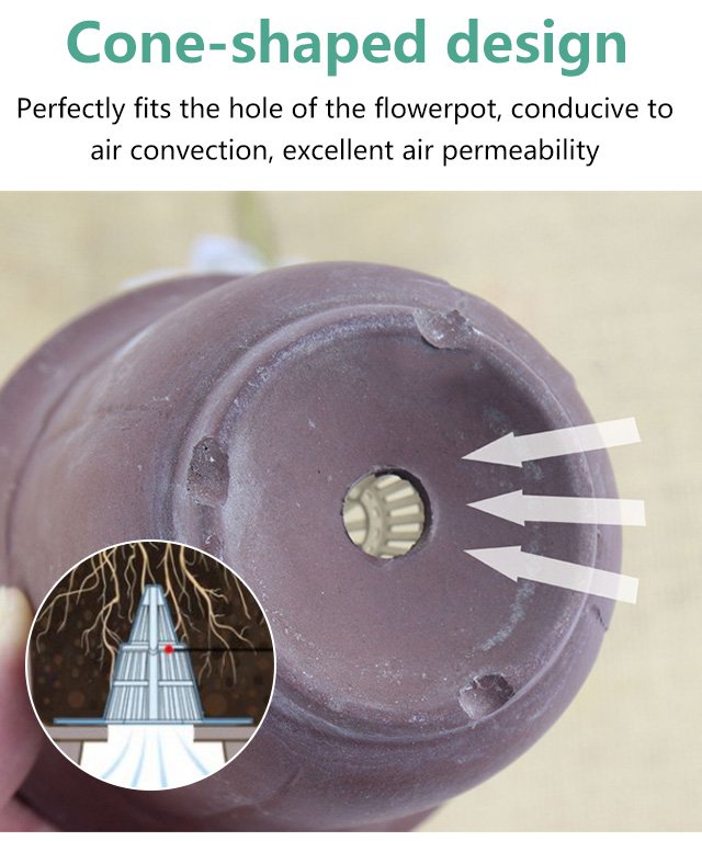 VENTILACIÓN Y CONTRA LA PUDRICIÓN DE RAÍCES – Con su diseño cónico tridimensional hueco, este dispositivo se coloca en el fondo de la maceta para mejorar la circulación del aire y el drenaje, evitando el exceso de agua. Así, las raíces de tus plantas se mantendrán ventiladas y crecerán sanas y fuertes.