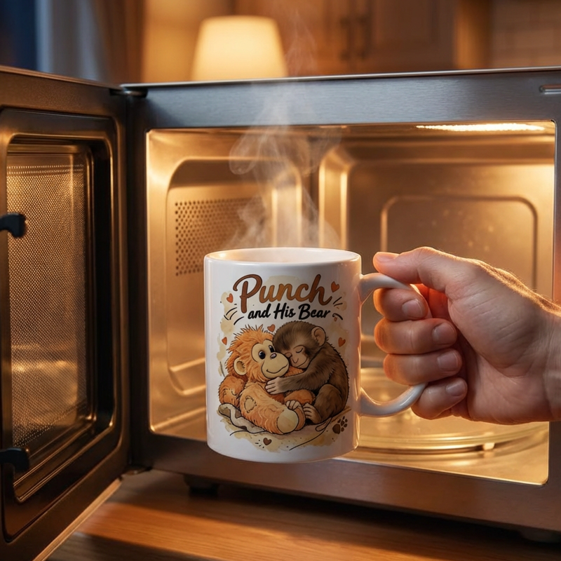 Kubek ceramiczny z uroczą małpką „Punch and His Bear”🐒🧸☕✨