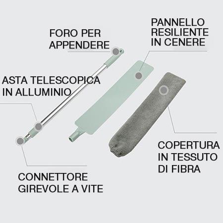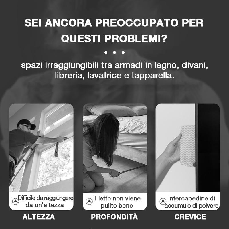 Fácil de limpiar las zonas de difícil acceso, elimina el polvo sin esfuerzo. Muy utilizado para espacios inaccesibles entre armarios de madera, sofás, librerías, lavadoras y persianas.