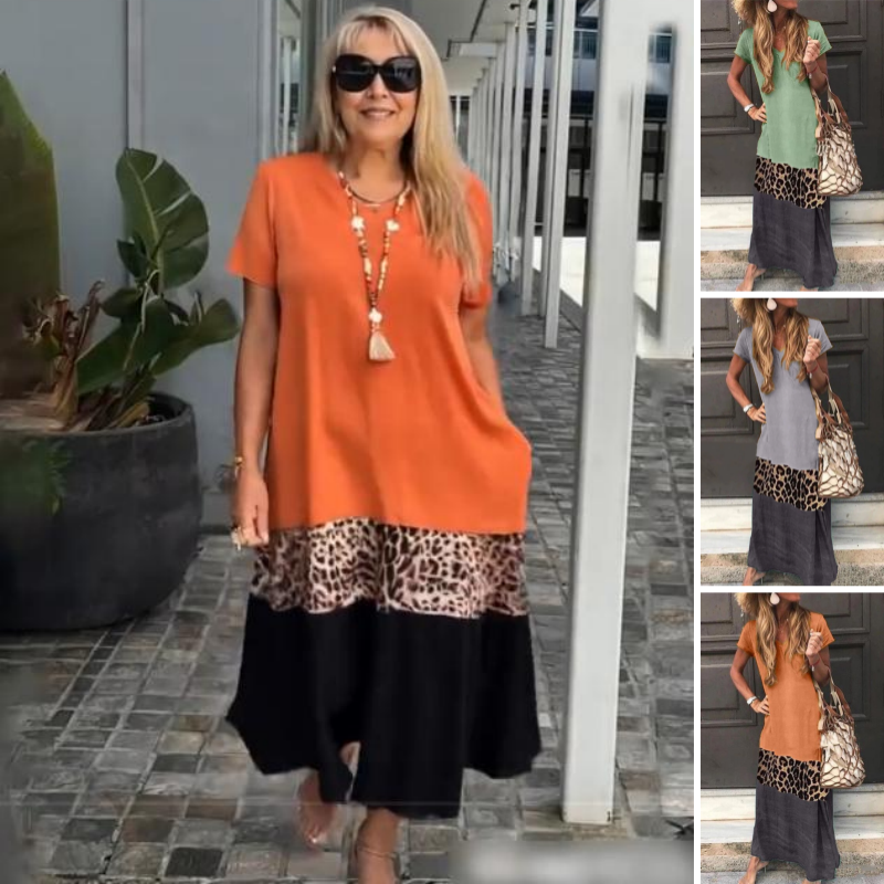 Pakiet zawiera: 1 * damska długa sukienka z krótkim rękawem w kolorowe wzory