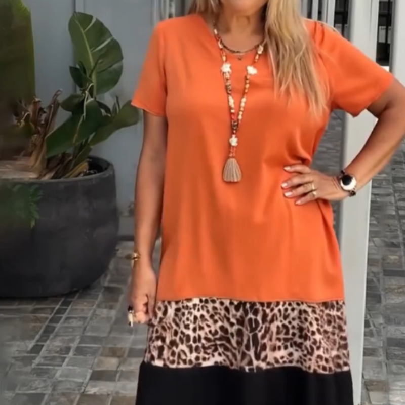 PRZYCIĄGAJĄCY WZROK BLOK KOLORÓW: Zaprojektowany z efektownym trójkolorowym wzorem blokowym, w tym odważnym nadrukiem lamparta, który dodaje modnego i stylowego akcentu, dzięki czemu idealnie nadaje się na każdą swobodną lub luźną okazję.